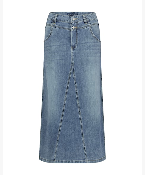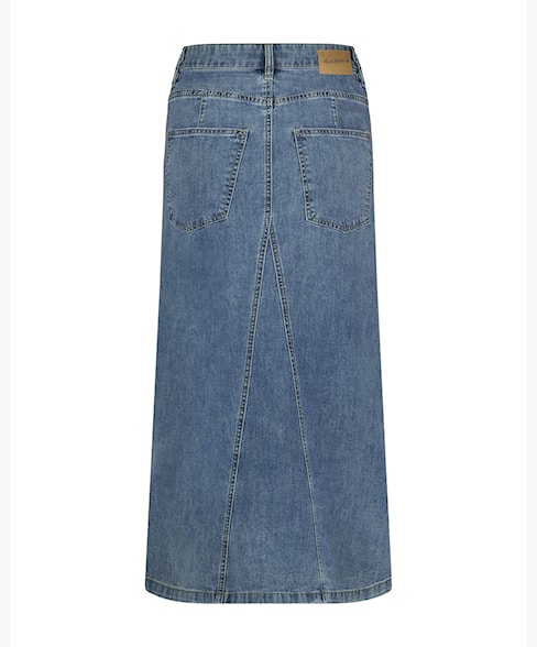De Alina skirt stone used is een denim midi rok met een jeansblauwe wassing. Deze rok heeft een regular fit, is gemaakt van stretchdenim voor ultiem comfort en loopt licht wijd uit.